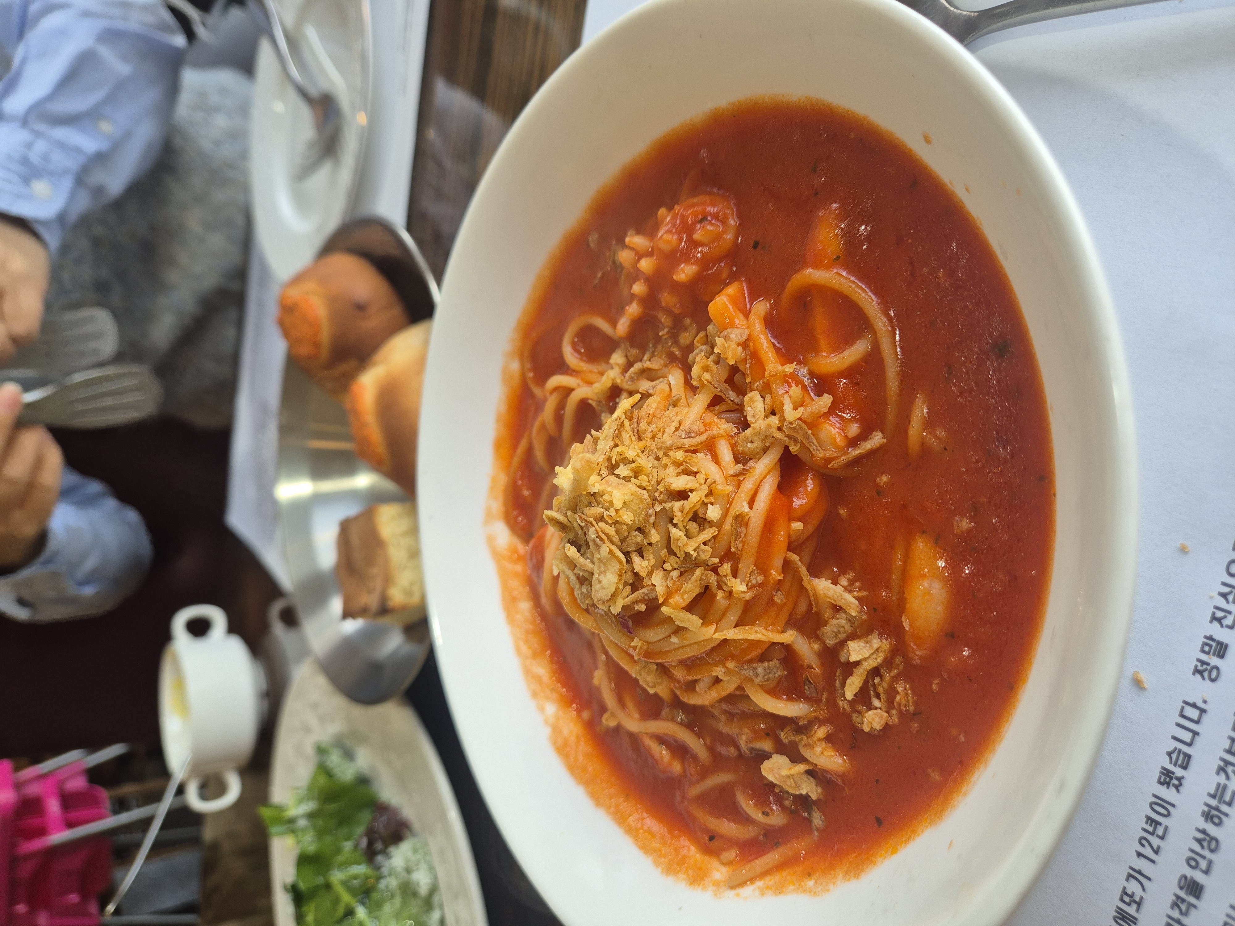 매콤 정도를 선택할 수 있어서 취향껏 즐길 수 있었고, 해물이 들어간 토마토소스가 정말 깊은 맛을 내더라고요.